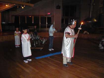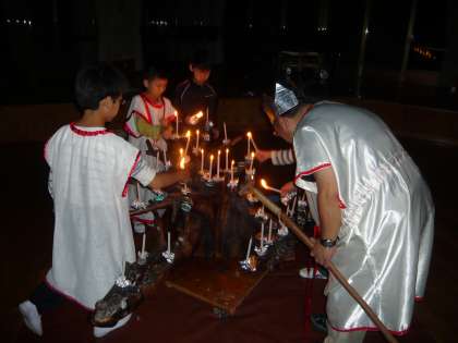 画像は,火の神と火の子の様子,全員で歌を歌っている様子です。この「キャンドルファイヤー」の様子につきましては,鮮明な画像を使って,週末に詳しくお伝えする予定です。