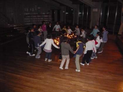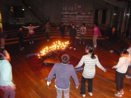 画像は,ゲームを楽しんでいる様子です。この「キャンドルファイヤー」の様子につきましては,鮮明な画像を使って,週末に詳しくお伝えする予定です。