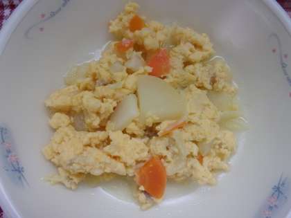 「ベーコンとポテトのかわりオムレツ」は,ベーコンやたまねぎ,にんじん,じゃがいもをいためて,たまごを加えて作りました。みなさんいかがでしたか? 「オムレツ」や「オムライス」など,『どうしてこんな名前がついたのかな?』なんて思って,料理や食材のルーツを探っていくと,きっと新しい発見がありますよ!