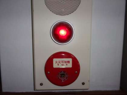 下の写真は,「火災報知機(かさいほうちき)」です。火事発生を非常ベルで知らせます。