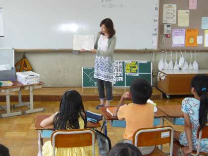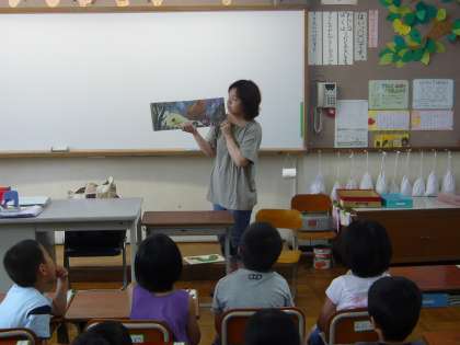 毎週水曜日午前8時30分から8時45分の15分間,京極小学校の子どもたちに「読み聞かせ」を行っていただいている,京極小学校図書ボランティア「かしの木」の読み聞かせが,今日は1〜3年生の教室でありました。