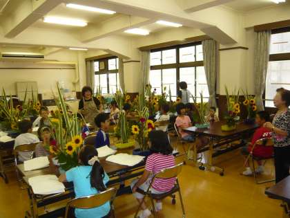 7月13日(水)2・3時間目に,本館2階にあるふれあいルームを会場に,京極女性会のお世話により2時間目は6年生が,3時間目は5年生が「生け花体験教室」で,生け花に挑戦しました。この「生け花体験教室」は,例年5・6年生が生け花の体験をしています。
