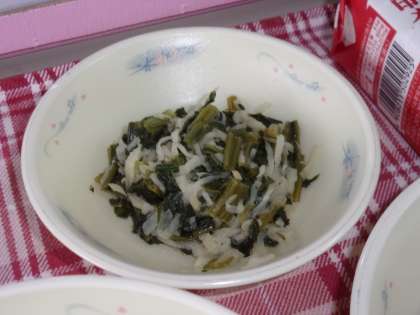 今日の給食の「切干大根(きりぼしだいこん)」は,色のうすい野菜のなかまです。大根(だいこん)を干して乾燥(かんそう)させた食べ物です。