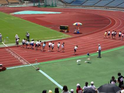 7月23日(土)に西京極総合運動公園陸上競技場で,第8回「京都小学生クラブ対抗陸上競技大会」が開催され,本校から男子20人,女子9人の計29人の5・6年生が出場しさわやかな汗を流しました。