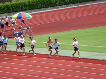 陸上競技大会に出場した本校の子どもたちは,全員が800mに出場しました。予選ではどの子どもたちも自己記録を更新し,よい結果を出しました。ちなみに5年生の部では,K君が2分47秒48のタイムで予選を通過し,また6年生の部ではK君が2分28秒23のタイムで予選を通過しました。