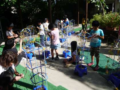 1年生が生活科の学習で,青い植木鉢で育てていた「アサガオ」の,種とりをしました。玄関を入ったところにある花壇の前に置かれた,「アサガオ」の植木鉢の前に集まった1年生の子どもたちは,袋を片手に持ち,アサガオの種をその袋に中に入れていきました。とれたアサガオの種の数は数え切れないほどで,子どもたちは大喜びでした。アサガオの種は来年まで置いておいて,2年生になったらまた種を蒔くんでしょうかね。