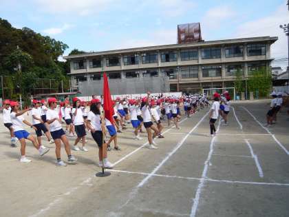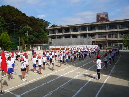 9月24日(土)の「運動会」の日まであと2週間あまり,今日9月9日(金)1・2時間目に1回目の「全校練習」を行いました。