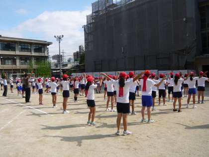 開会式の練習が終わると,次は「全校ダンス」の練習でした。ダンスのできる隊形に並び直し,前で踊るダンス係の子どもたちの見本を見ながら,曲にのってしっかりと踊りました。