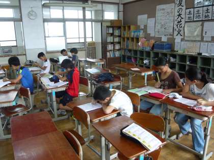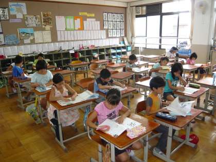 今日9月10日(土)午前8時30分から10時まで,9月の「土曜学習」がありました。今日の「土曜学習」には40人を超える参加者があり,1・2年生は2年生の教室で,3・4年生は4年生の教室で,5・6年生は5年生の教室で,3つの教室に分かれて学習に励みました。どの学年の子どもたちも約1時間30分,ドリル学習やプリント学習に熱心に取り組んでいました。