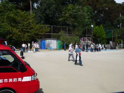 今日9月11日(日)午前9時から本校運動場と体育館を会場に,京極学区「自主防災訓練」が始まっています。この自主防災訓練は,地震などの災害が起こったときに,自分自身や町内でどんなことができるのかを考え,実際にいろいろなことを体験するものです。