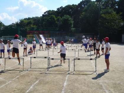 9月24日(土)の運動会の日まで,あと10日となりました。今日の5時間目に5・6年生の子どもたちが,運動場でハードル走の練習を行っていました。