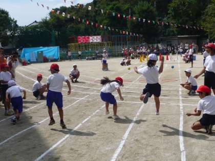 ゴムを跳びこしたり,フープをくぐったり,ボールをドリブルしたり,たくさんの障害物を忍者になって駆け抜けました。とっても可愛い忍者たちでした。