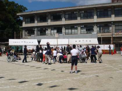 秋晴れの空の下,9月24日(土)に開催した平成23年度「運動会」の,プログラム番号15番,午前中の最後の競技,お年寄り・来賓・PTA・教職員による団体競技「玉入れ」の様子をお伝えします。