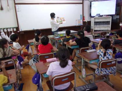 今日は,低学年対象に地域の方にお世話になって読み聞かせをしていただきました。ちょうど本校は今読書週間。お気に入りの1冊を見つけてみませんか!