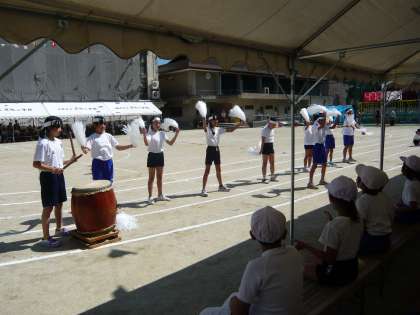 応援係の子どもたちは,応援団長を中心に最もオーソドックスな応援の練習をしてきました。全力を尽くして競技・演技をする自分たちへの励ましの気持ちをいっぱい込めて,大きな声で,大きな手拍子で,しっかりと応援をしました。