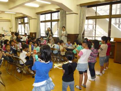 2時間目のサツマイモの調理が終わると,3時間目にふれあいルームで保護者のみなさんと1年生を招いて「おいもパーティー」が始まりました。2種類の料理の紹介をしたり,歌を歌ったり,鍵盤ハーモニカを演奏したり…,2年生の子どもたちは,2時間目の調理,3時間目のパーティーと,大活躍をしていました。