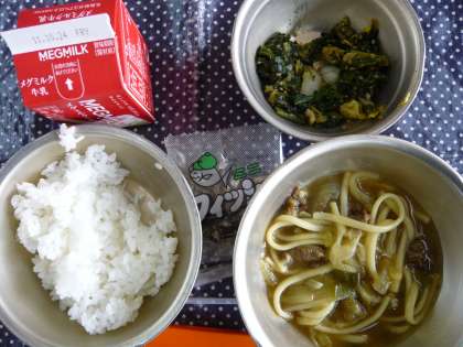 今日の給食は 「カレーうどん」 でした