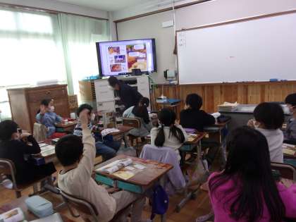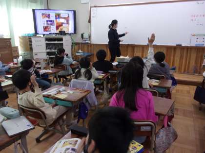3年生最後の外国語活動の様子です。今日は,短い絵本を聞いておおよその内容を理解しました。時間の後半には,ALTの先生からサプライズがあり,ゲームを楽しみました。