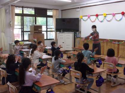 8日(金)に入学した15名の1年生。先生大好き,お友だち大好き!