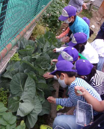 モンシロチョウの幼虫を,満面の笑みで見せてくれました。