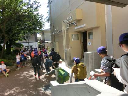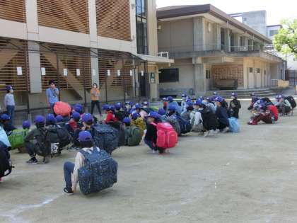 とてもよい天候のもと,5・6年生が花背山の家の宿泊学習に出発しました。