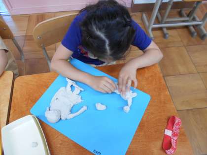 図画工作科の時間に,粘土で自分と一緒にお散歩したいものを作りました。
