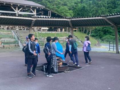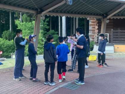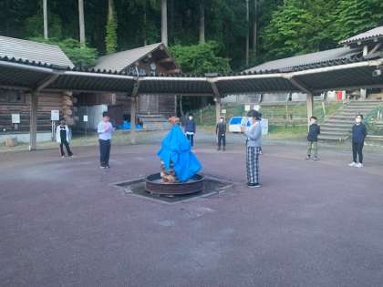まだ明るさが残っていますが,19:30開始のキャンプファイヤーに向けて,係りの人が練習を始めています。どんなファイヤーになるのかとても楽しみですね!