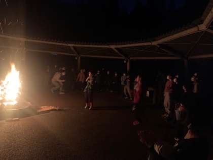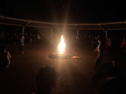 準備の間は,まだ明るかったのですが,遠き山に日が落ちると急に暗くなり,キャンプファイアーの雰囲気となりました。