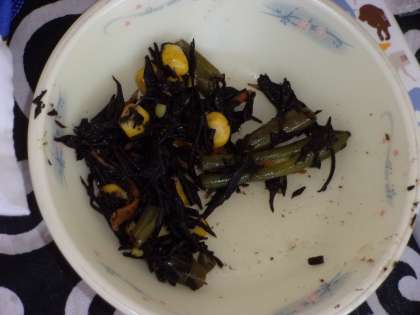今日の献立(こんだて)に使われている「ひじき」には, カルシウムや鉄(てつ),ヨウ素(そ)がたくさん含まれています。