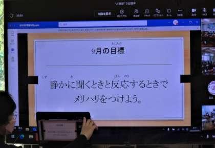児童会からは,9月の目標(もくひょう)についてです・・・