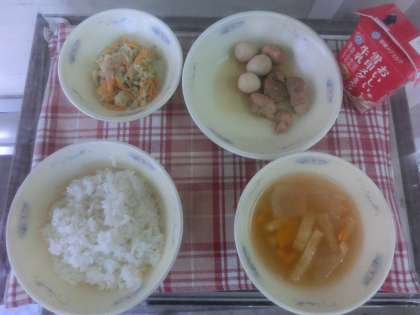 台風が通過し、再び暑い日中が戻ってきました。今日の給食は残暑が厳しい日にぴったりの献立でした。鶏肉のさっぱり煮は、お酢がしっかりきいていてとてもおいしくいただきました。とうがんもあっさりとしたなかでも、だしがしっかりきいていてごはんによく合いました。