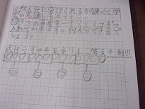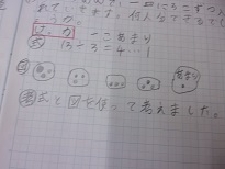 算数で「あまりのあるわり算」の学習の1時間目をしました。あめ13個を3個ずつお皿にのせて分けると…1個あまりが出る!!これをどうやって表そうか,みんなで考えました。これから学習を進めていきます。