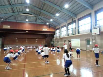 〇3・4年生⇒ 体育の時間・・・合同で「民よう」の練習に汗を流していました。“ダイナミックな踊り”にチャレンジだ! 「seiya!」
