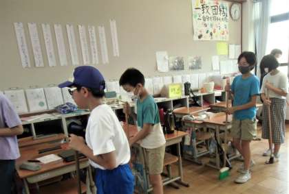 〇5年生⇒ そうじの時間・・・みんなで協力して,がんばっていました。ほうき担当の人たちは,アルゴリズム“ほうきさばき”。リズムにのっていましたね。