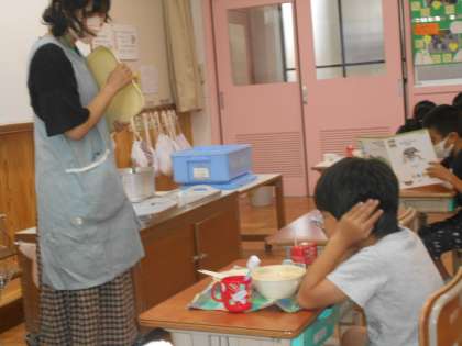 9月8日に栄養教諭から苦手な食べ物の「まほうの食べ方」を教えてもらいました。