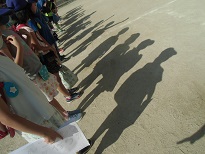 3年生では,国語で「ちいちゃんのかげおくり」の学習をしています。今日は帰りの時に,「ひとうつ,ふたあつ,みいっつ・・・」と全員でかげおくりをしました。「できた!」「あれ〜?」とわいわい。これから学習をして,読みを深めていきます。