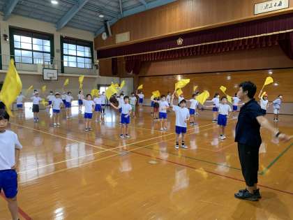 演目はフラッグで、銀河鉄道999の曲にのせて旗をふります。