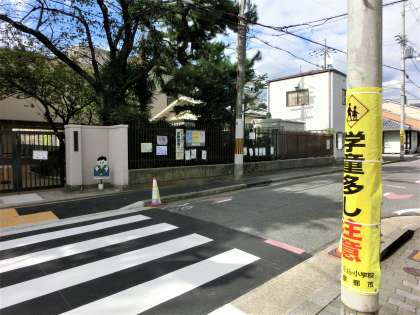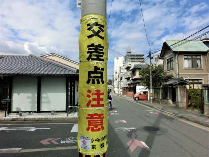 通用門(つううようもん)近くにある,交通事故防止のための「反射電柱幕(はんしゃ でんちゅうまく)」が,新しくなりました。