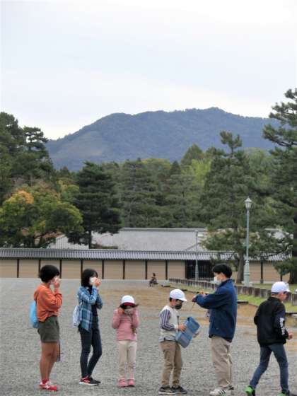グループごとに探検ボードとタブレットをもって、地図を見ながら御苑内の“秋”を探索しました。
