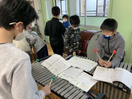 3 音楽科の学習では、グループごとに「ラバーズコンチェルト」の合奏の練習をしています。各パートの音を重ねることに親しんでいます。