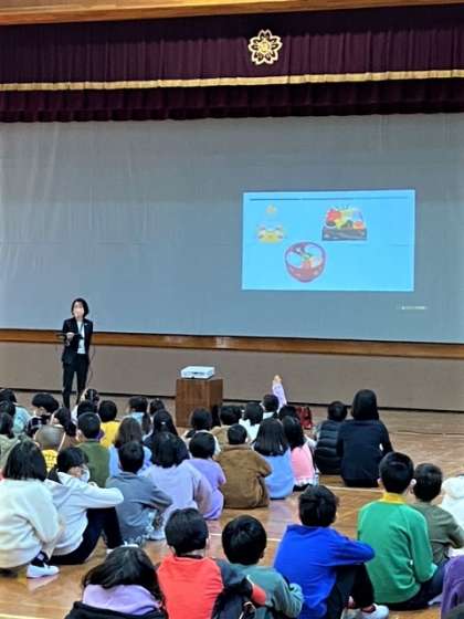 校長先生から、お正月や七草のお話や“うさぎ年”にちなんで、「げんきに たのしく」“ぴょこんっと跳びだしましょう!”と、新しい年、新しい学期に向けたお話がありました。
