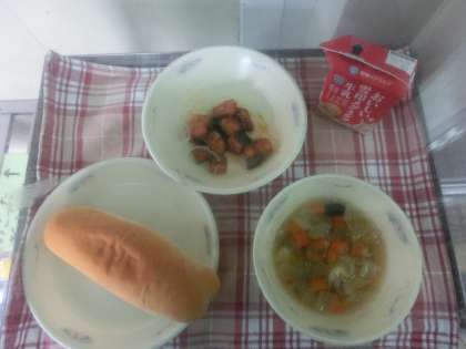 アングレスってどういう意味だったでしょう?このページで何度か紹介しています。アングレスは「イギリスの」という意味のフランス語です。ウスターソースを主に使い、ケチャップや砂糖で作ったソースに具材を絡め、片栗粉を付けて揚げます。今回はさけでしたが、鶏肉や豚肉のアングレスも給食で出ていますね。