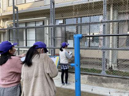 冬の間どんな生き物がいるのか、どのようにして過ごしているのか、などを観察しました。1学期に植えたツルレイシや観察池にいる魚などを観察ノートに記録していました。