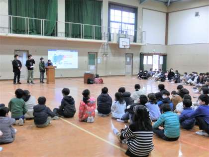 はじめに、校長先生から季節を分ける“節分”についてお話がありました。春が近づいてくるなかで、「進級するためのまとめや準備をしておこう」、また「インフルエンザにも気をつけよう」というお話もありましたね。