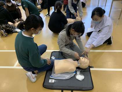 京あんしんこども館で救命講習を行いました。胸骨圧迫を実際にしてみて、疲れたり、手が痛くなったりして、心肺蘇生の大変さを知りました。それでも、「強く、速く、絶え間なく」をしっかり意識して時間いっぱい練習に取り組むことができました。万が一の時の行動に是非活かしてほしいですね。