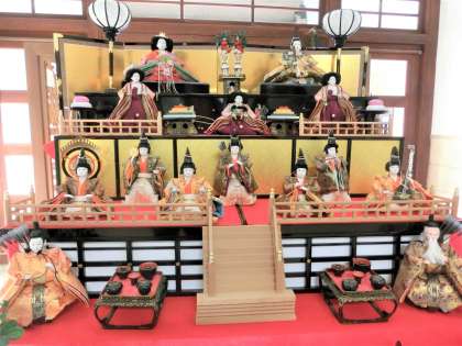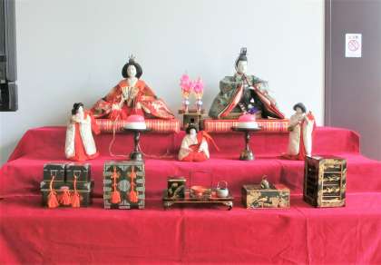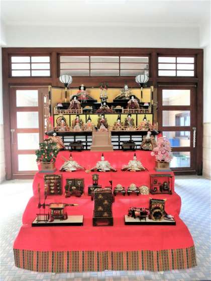 昨日、「ひできの間」と「エレベータホール前」に、おひなさまを飾りました。