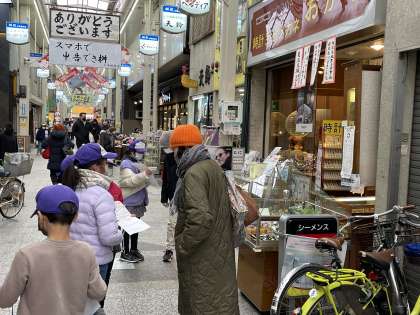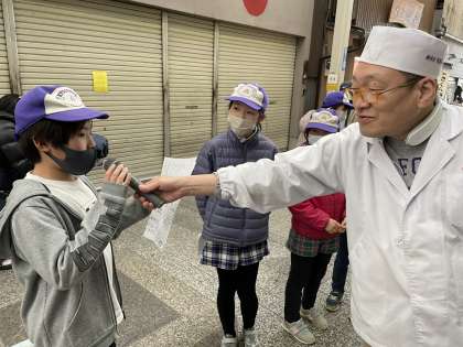 チラシを配りに桝形商店街へ行きました。