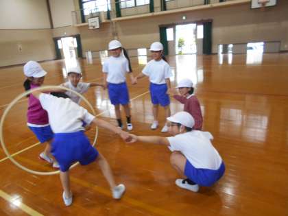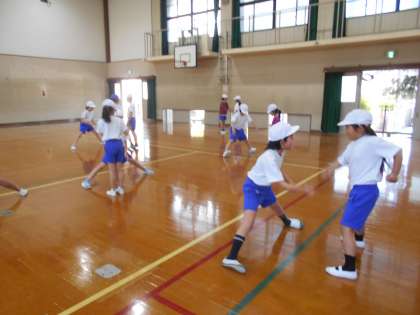 体育科の時間はいろいろな動きや遊びで、体ほぐしの運動をしています。
