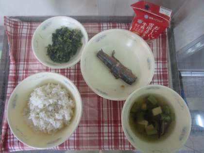 今日の給食「さんまのかわり煮」は骨までやわらかく、おいしくいただきました。「ほうれん草のごま煮」はごまの風味がよく、「すまし汁」は味付けがほどよく、おいしかったです。連休明け久しぶりの給食、ごちそうさまでした。