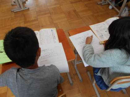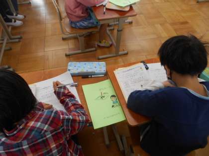 書写の学習では、お手本をよく見ながら、みんな一字一字丁寧に書くことをがんばっています。